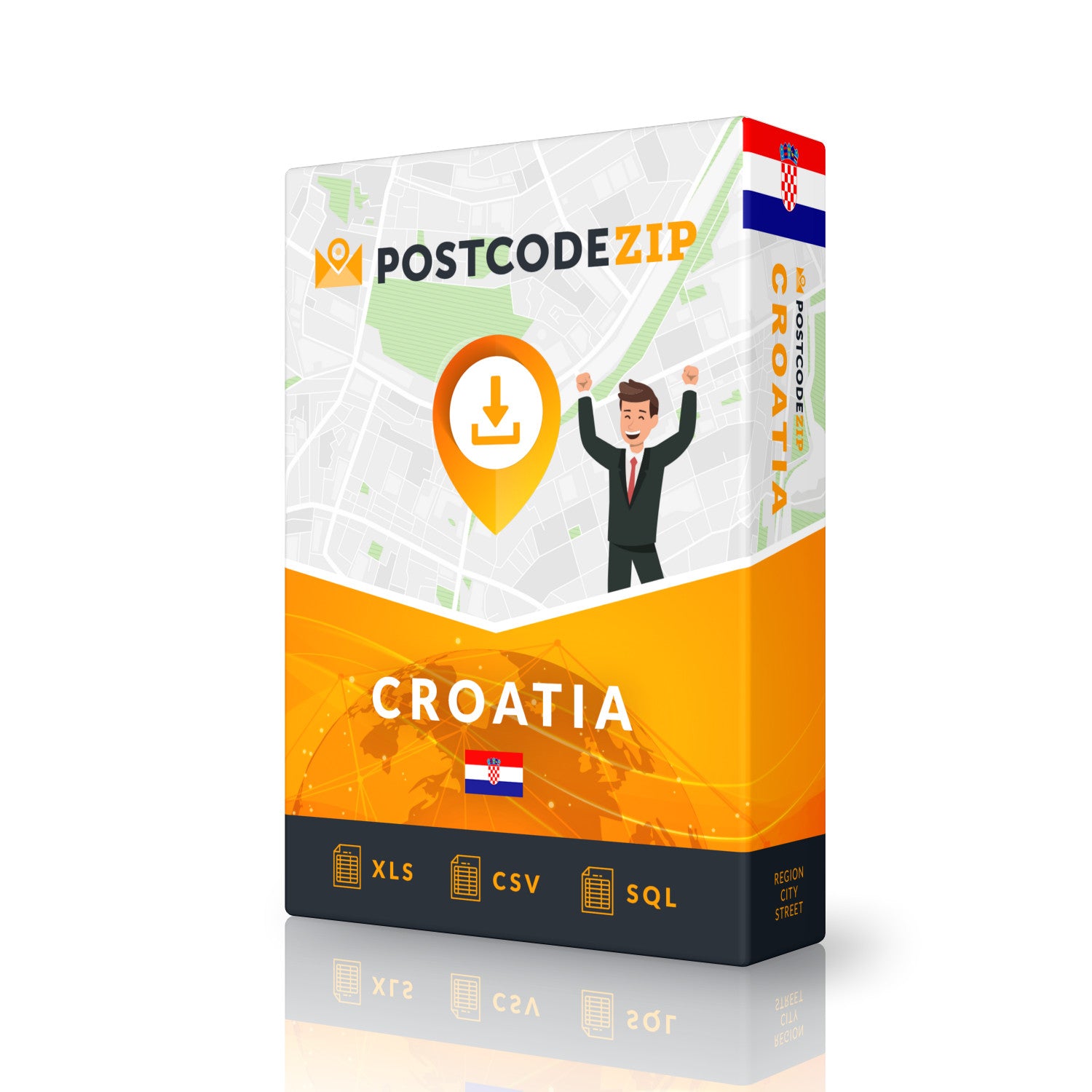 This product is a downloadable file in Excel, CSV or SQL format, containing a list of all postal codes, cities and streets in this country. The data can be filtered directly in Excel and then sorted by municipalities and regions of Croatia.