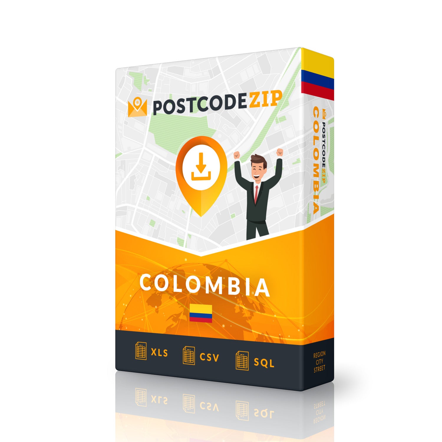 Ce produit est un fichier téléchargeable au format Excel, CSV ou SQL, contenant une liste de tous les codes postaux, villes et rues de ce pays. Les données peuvent être filtrées directement dans Excel puis triées par municipalités et régions de Colombie.