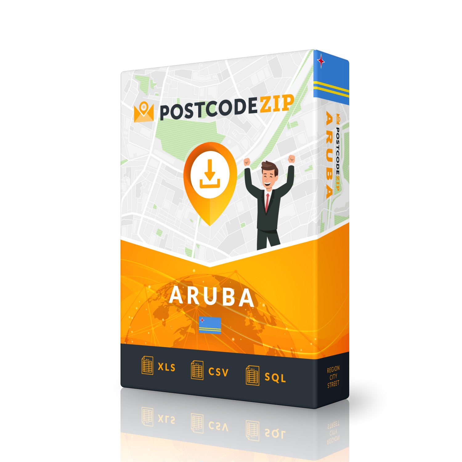The downloaded file contains 0 Postcodes, 0 Cities and 0 Streets in Aruba available in Excel, CSV or SQL format.