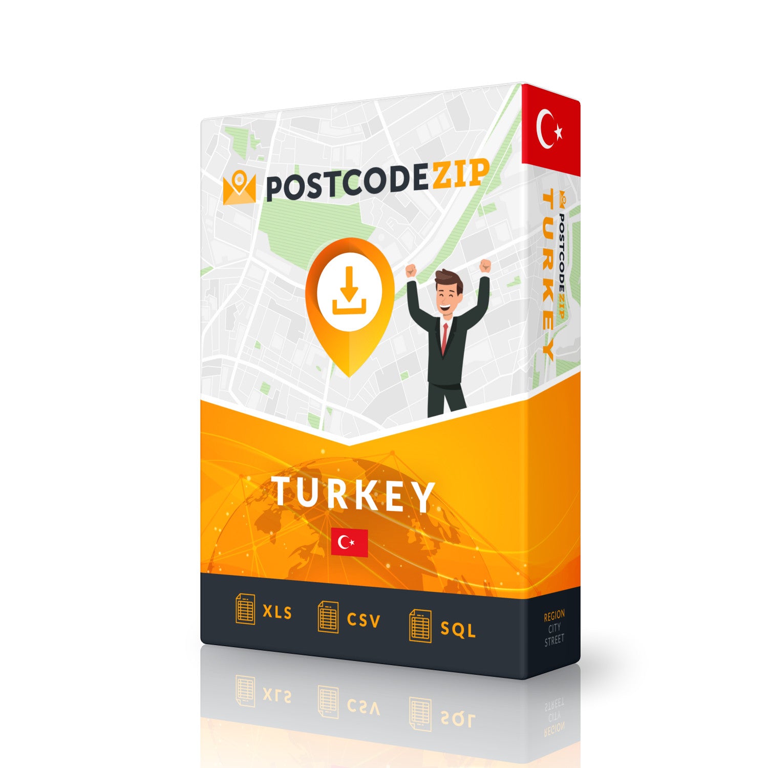 This product contains the complete list of all regions in Turkey. The list contains 922 cities sorted in 7 regions.