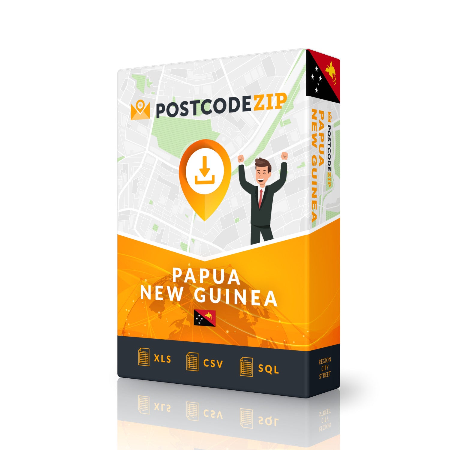 This product is a downloadable file in Excel, CSV or SQL format, containing a list of all postal codes, cities and streets in this country. The data can be filtered directly in Excel and then sorted by municipalities and regions of Papua New Guinea.