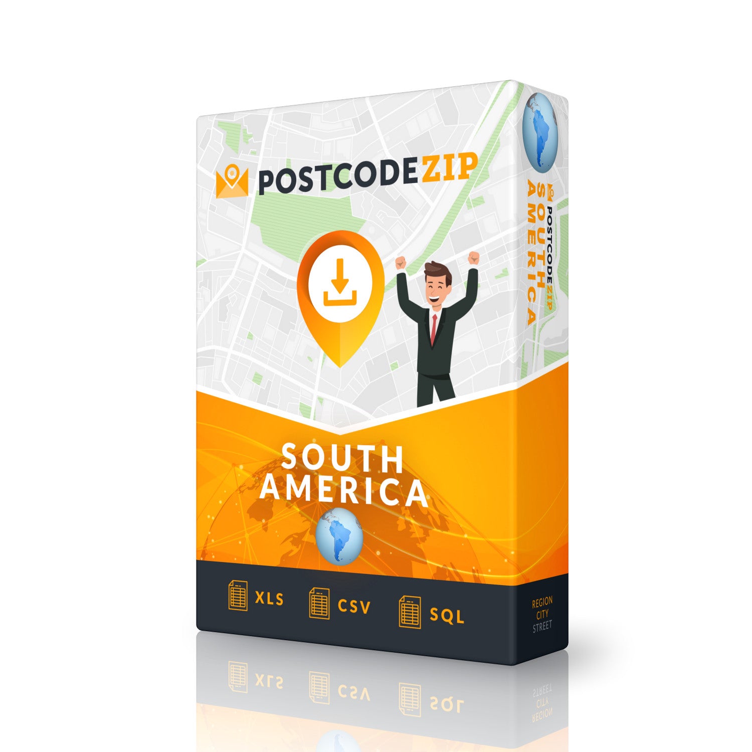 This product contains the complete list of all regions in South America. The list contains 3235019 cities sorted in 207 regions.