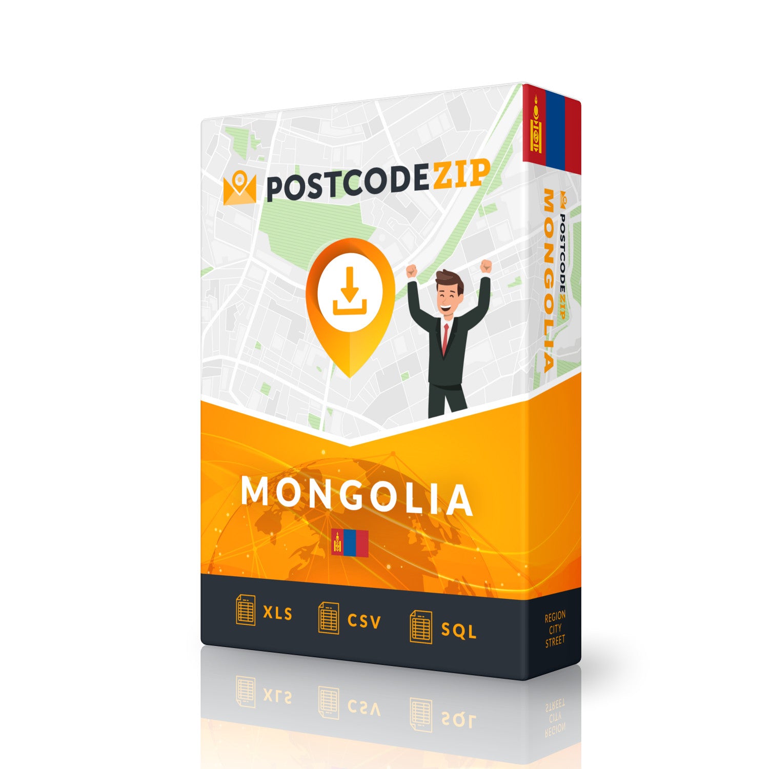 可下载的文件包含蒙古国的0个邮政编码、188个城市和308条街道,支持Excel、CSV或SQL格式下载。