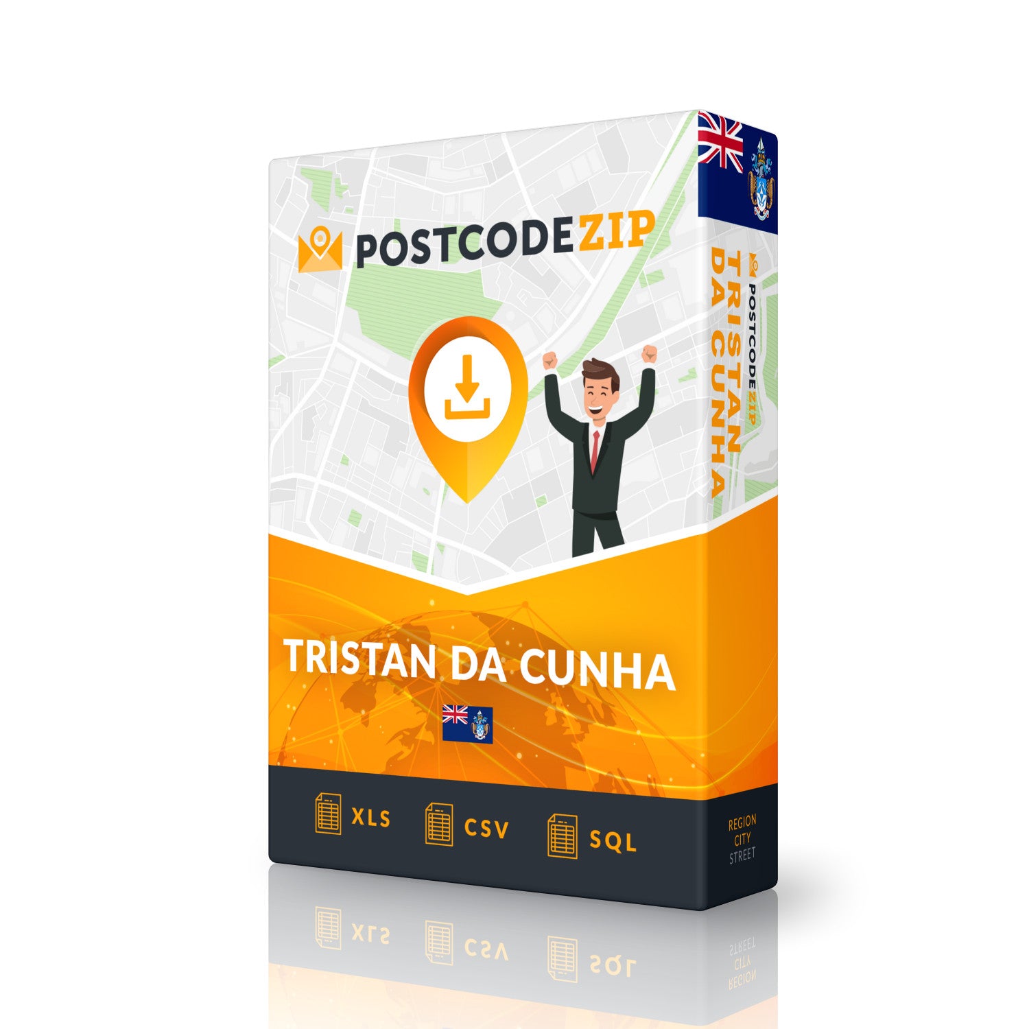本产品包含特里斯坦·达库尼亚所有邮政编码/城市的完整列表。文件包含超过1000个邮政编码,覆盖整个国家的1000多个城市。